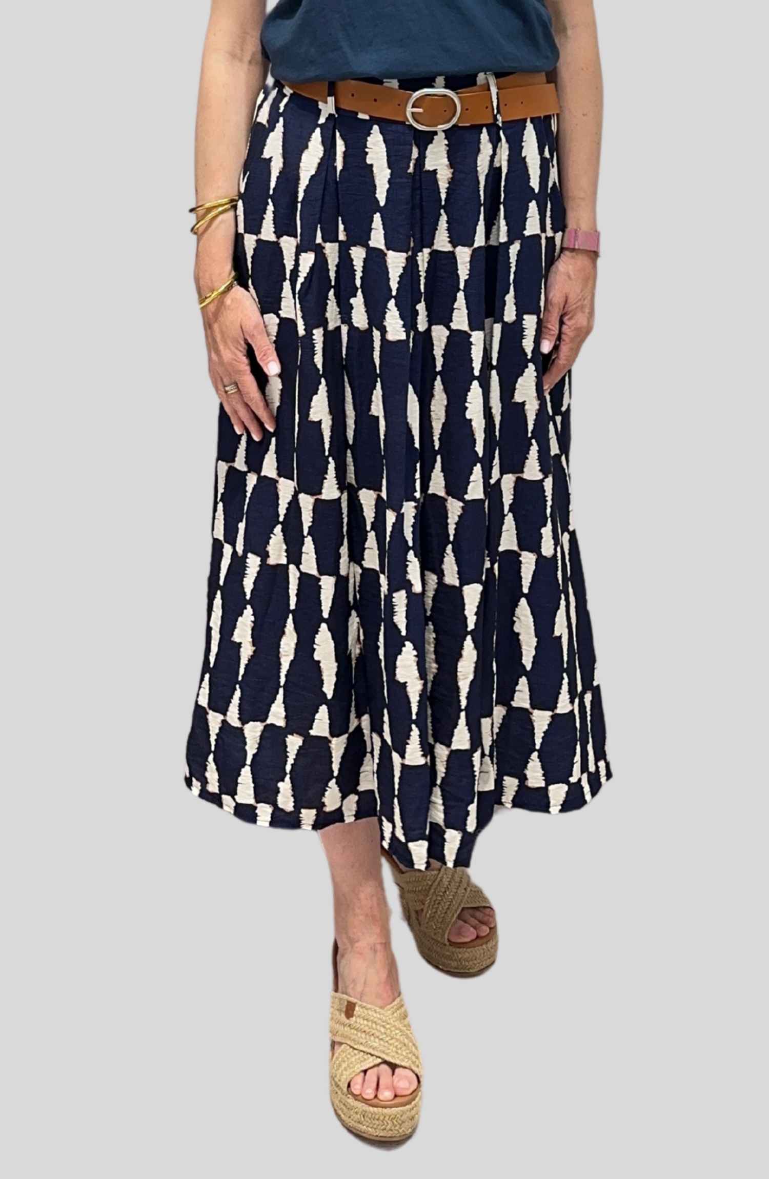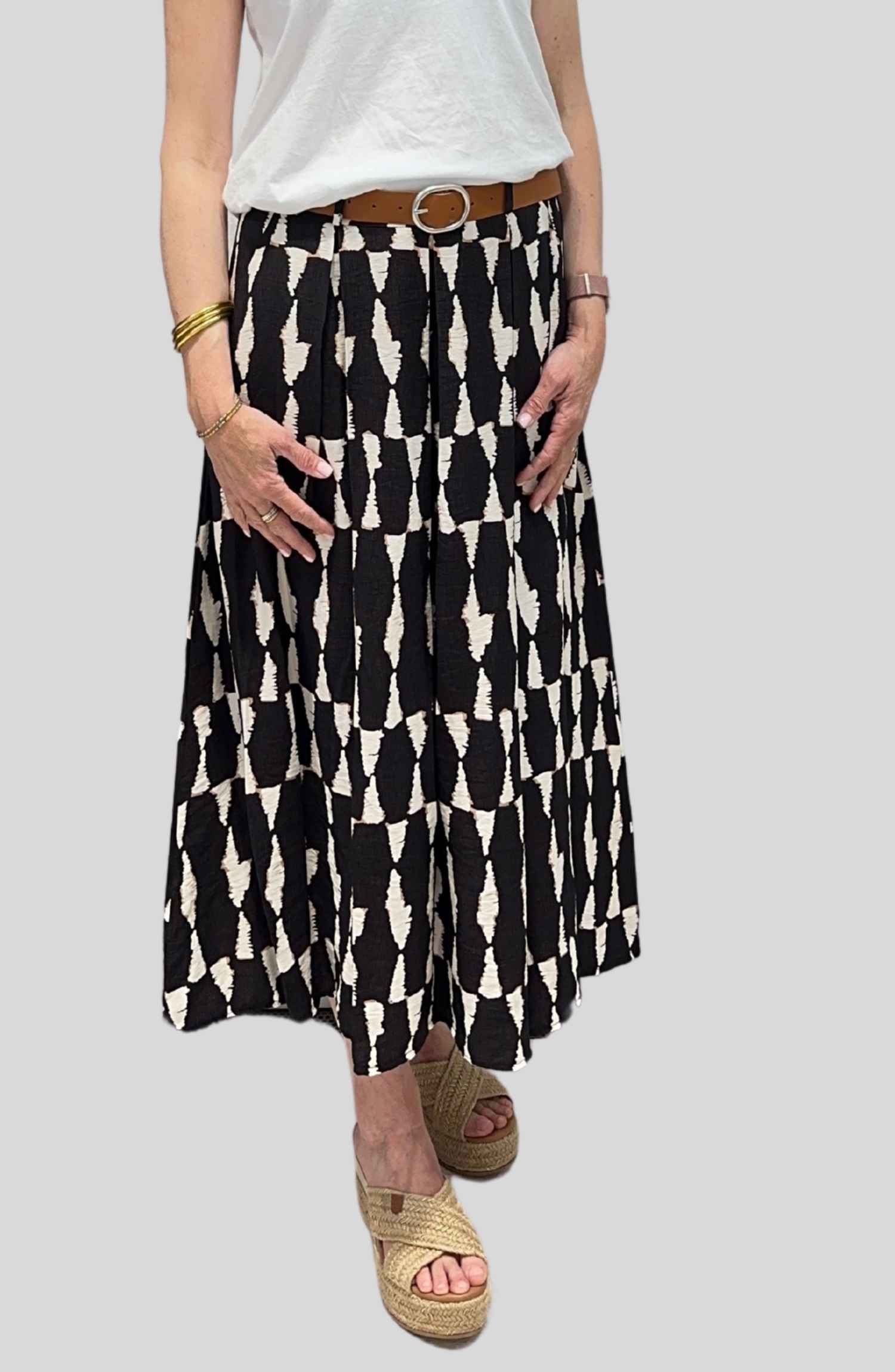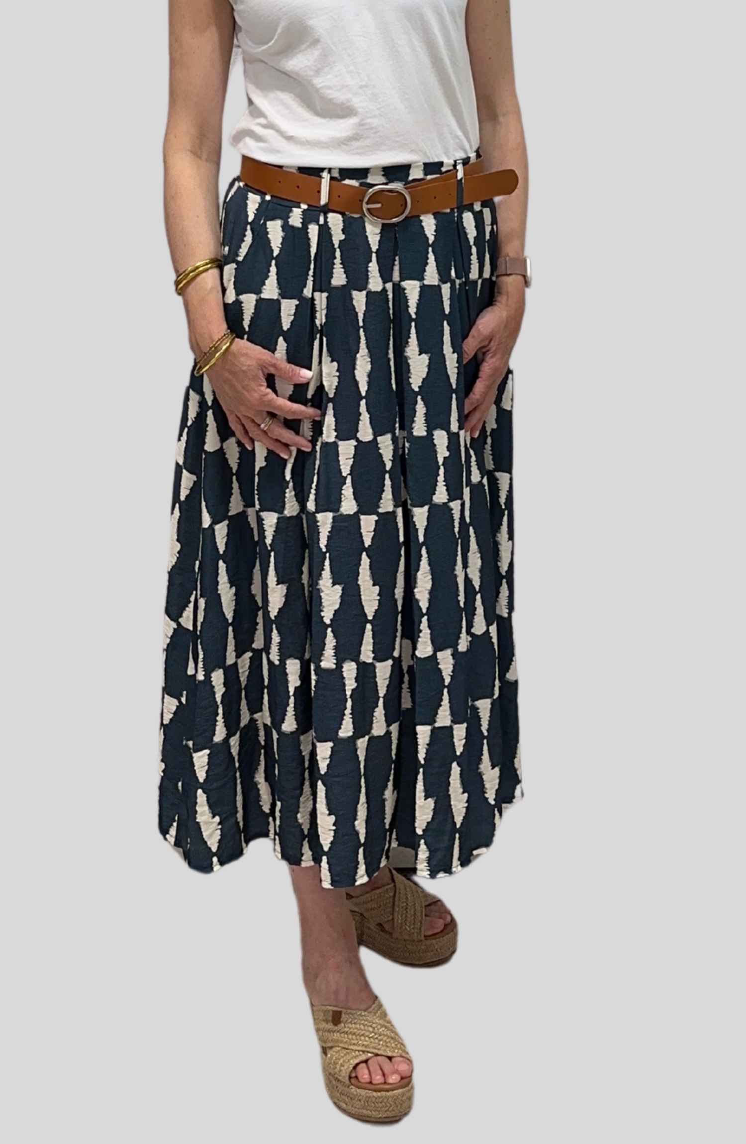 Esta falda estampada es perfecta para dar un toque de alegría y frescura a tus looks. Con goma en la cintura y cinturón incluido, se adapta cómodamente a tu figura y realza tu silueta con un ajuste favorecedor. Su tejido ligero (85% viscosa, 15% poliéster) aporta suavidad y movimiento, ideal para los días más cálidos. Además, cuenta con prácticos bolsillos laterales que la hacen aún más versátil.