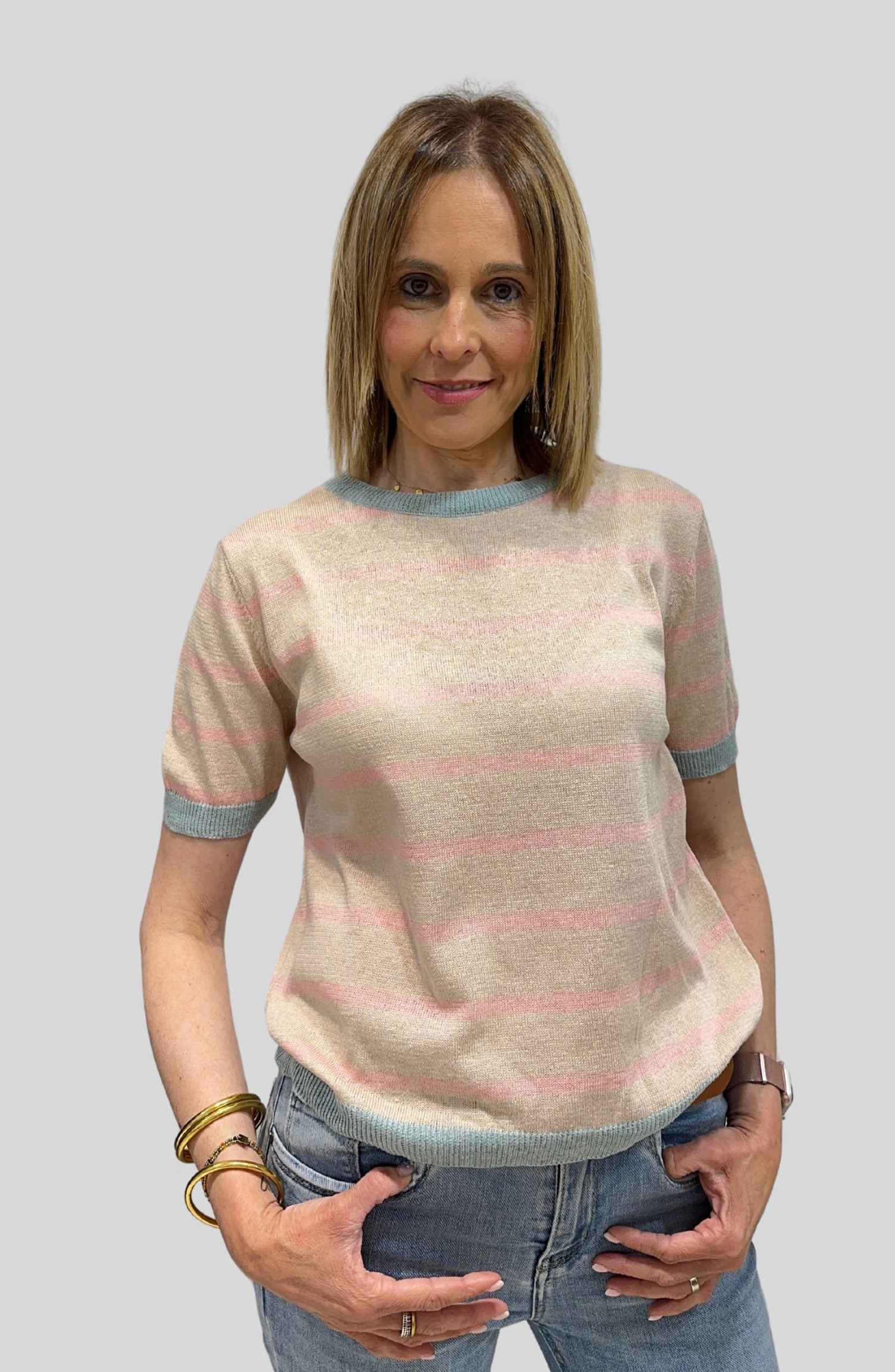 Un clásico que nunca falla. Este jersey de rayas de punto con manga corta reinventa la icónica raya marinera con un estilo fresco y atemporal. Confeccionado en un tejido suave y ligero, es perfecto para los días de entretiempo o para dar un toque náutico y sofisticado a tu look diario. La raya marinera es un básico que nunca pasa de moda, y esta prenda lo demuestra con su corte actual y versatilidad. Ideal para combinar con vaqueros, faldas o pantalones de lino.