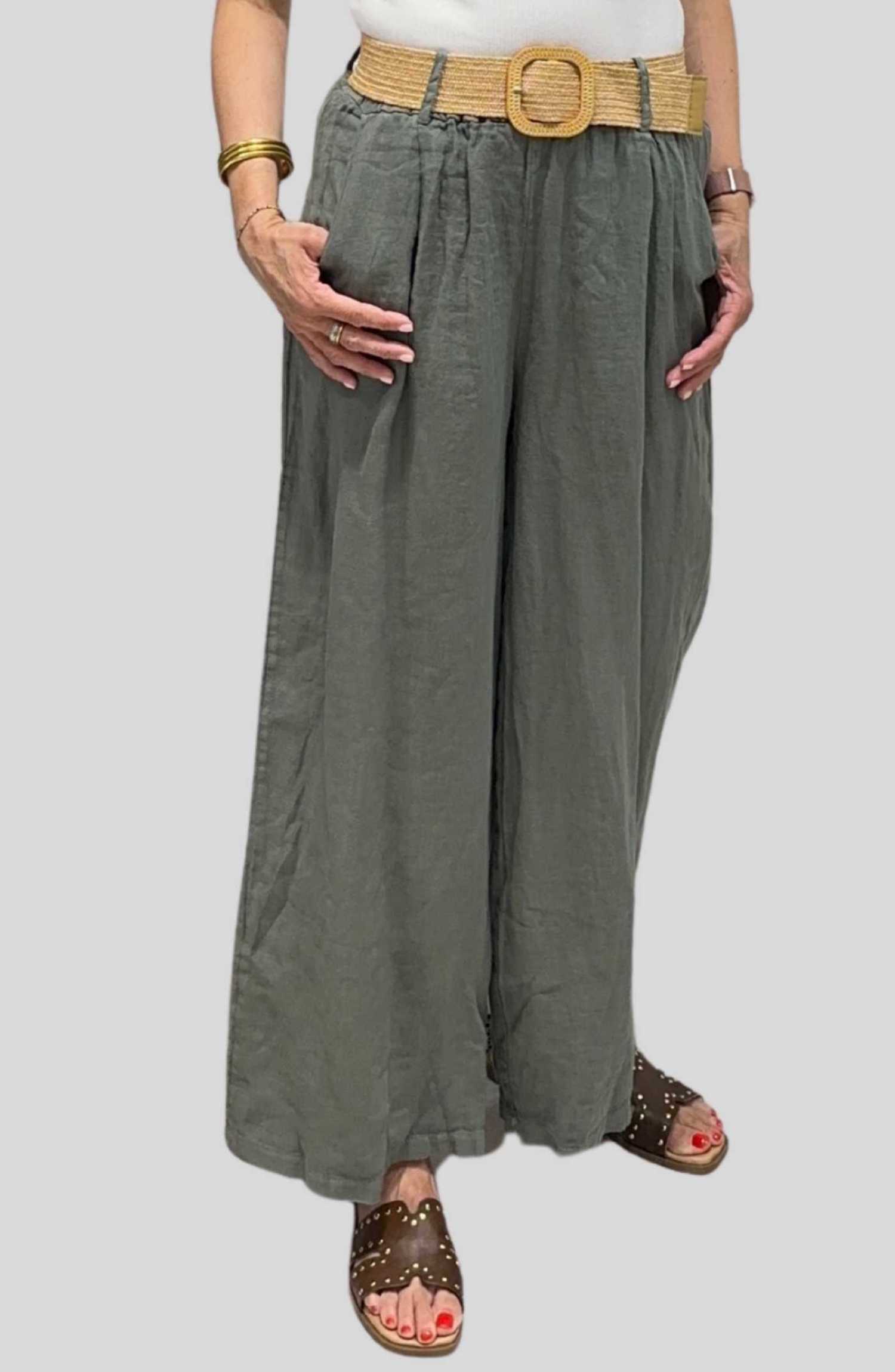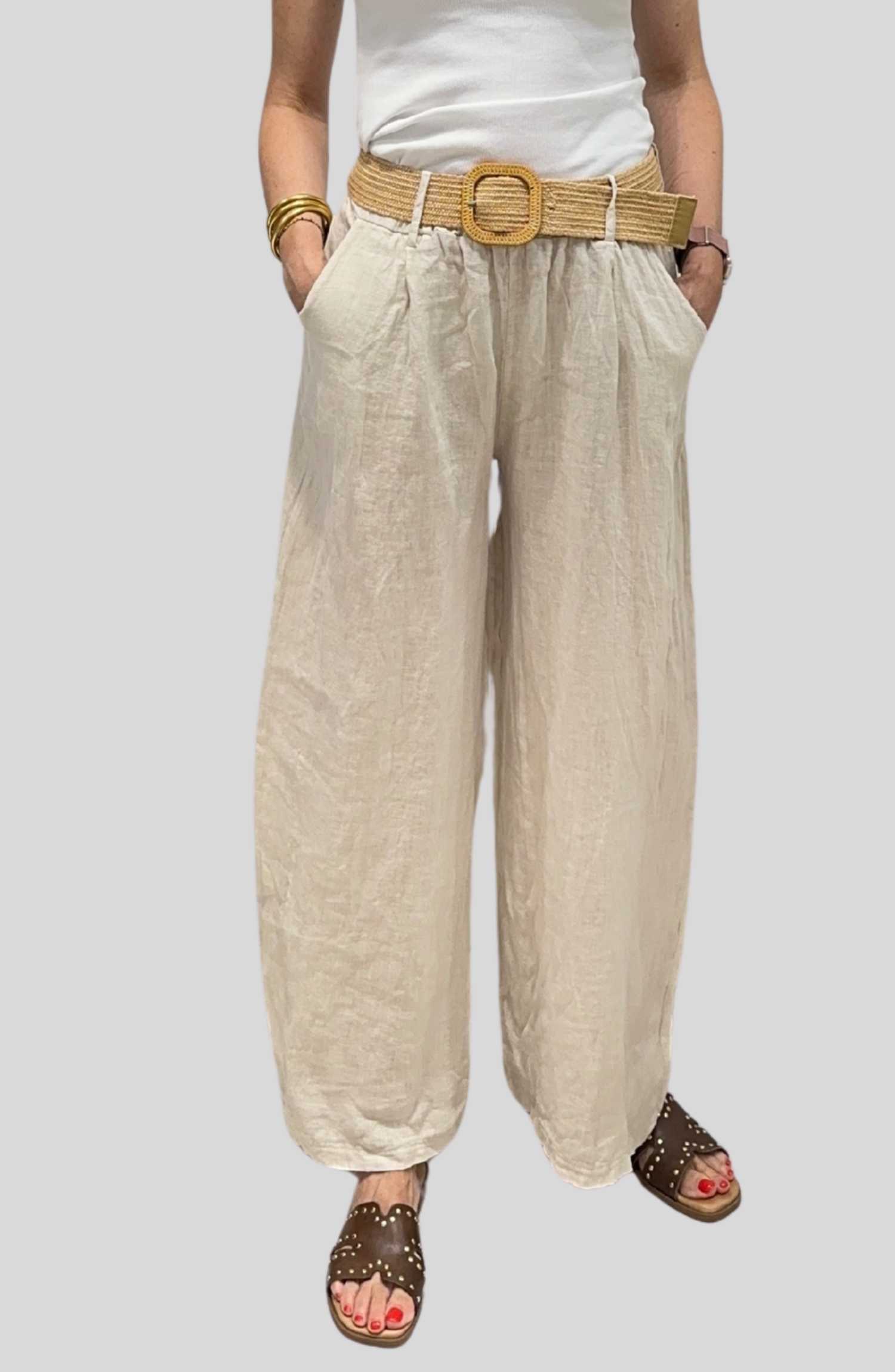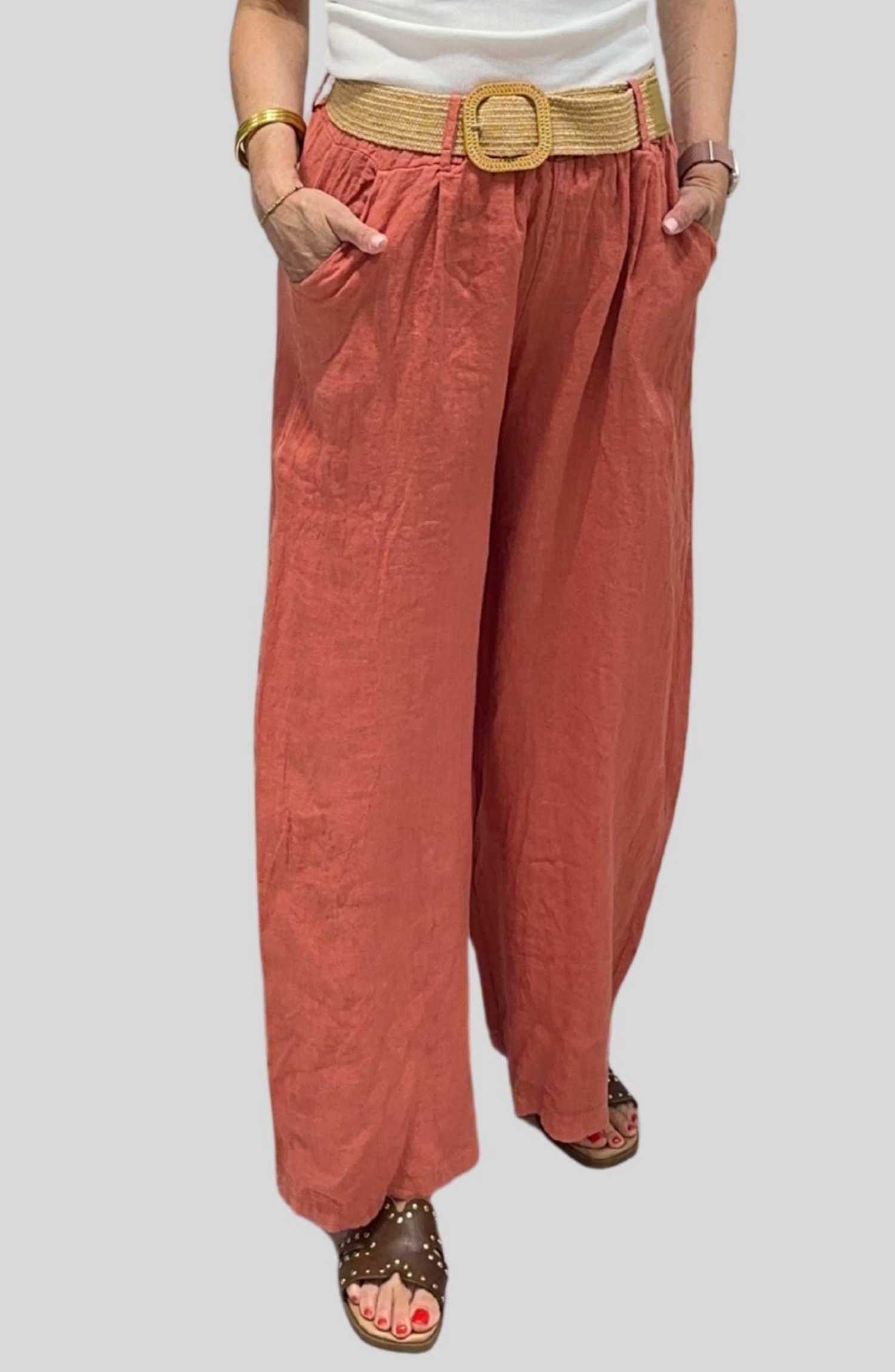 Pantalón de Lino con Cinturón de Rafia | Talla Única ( Adaptable desde la talla 36 hasta la talla 42)