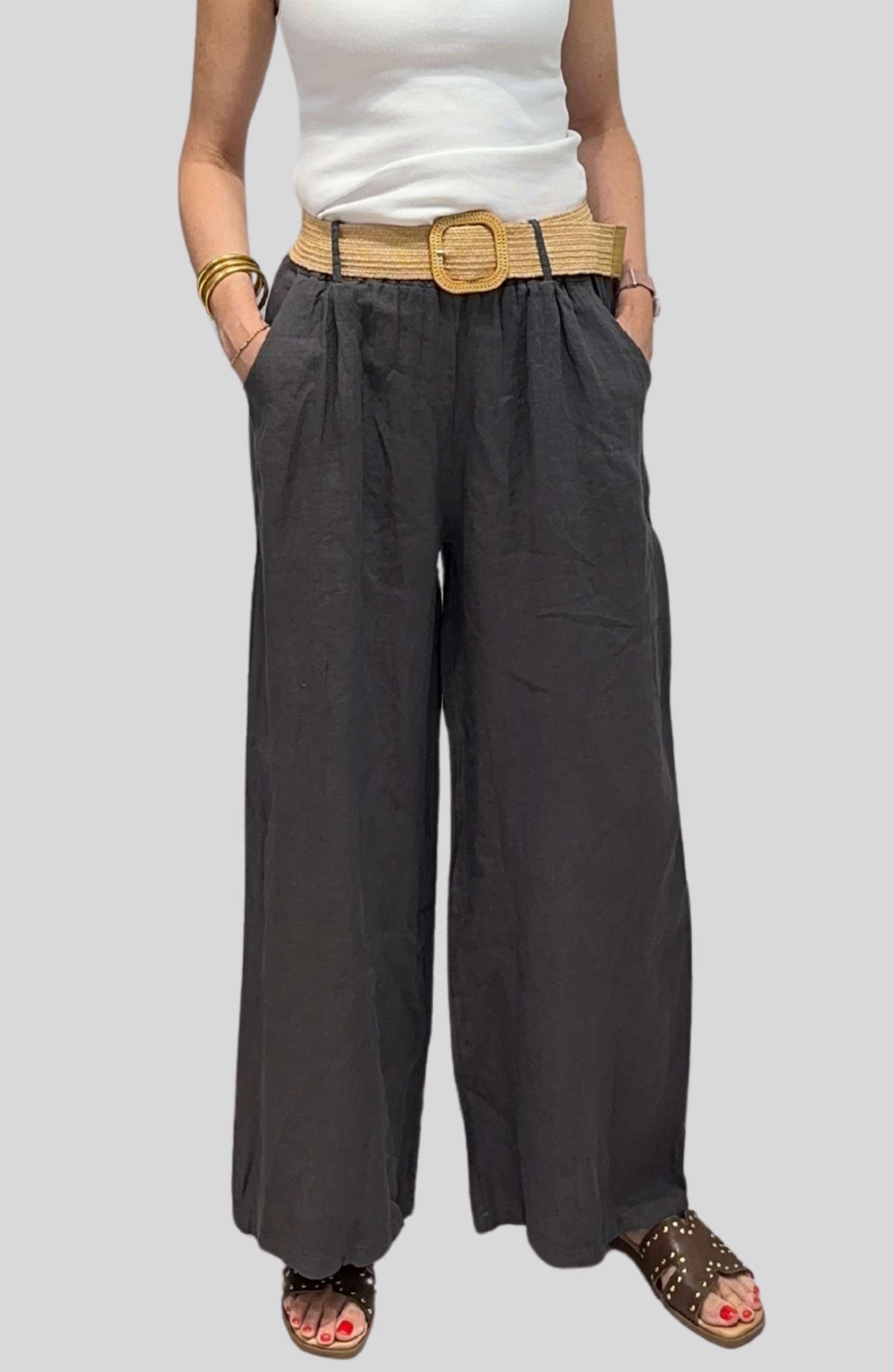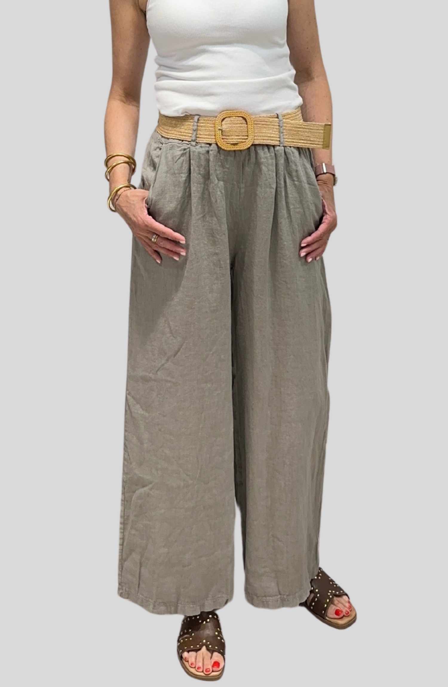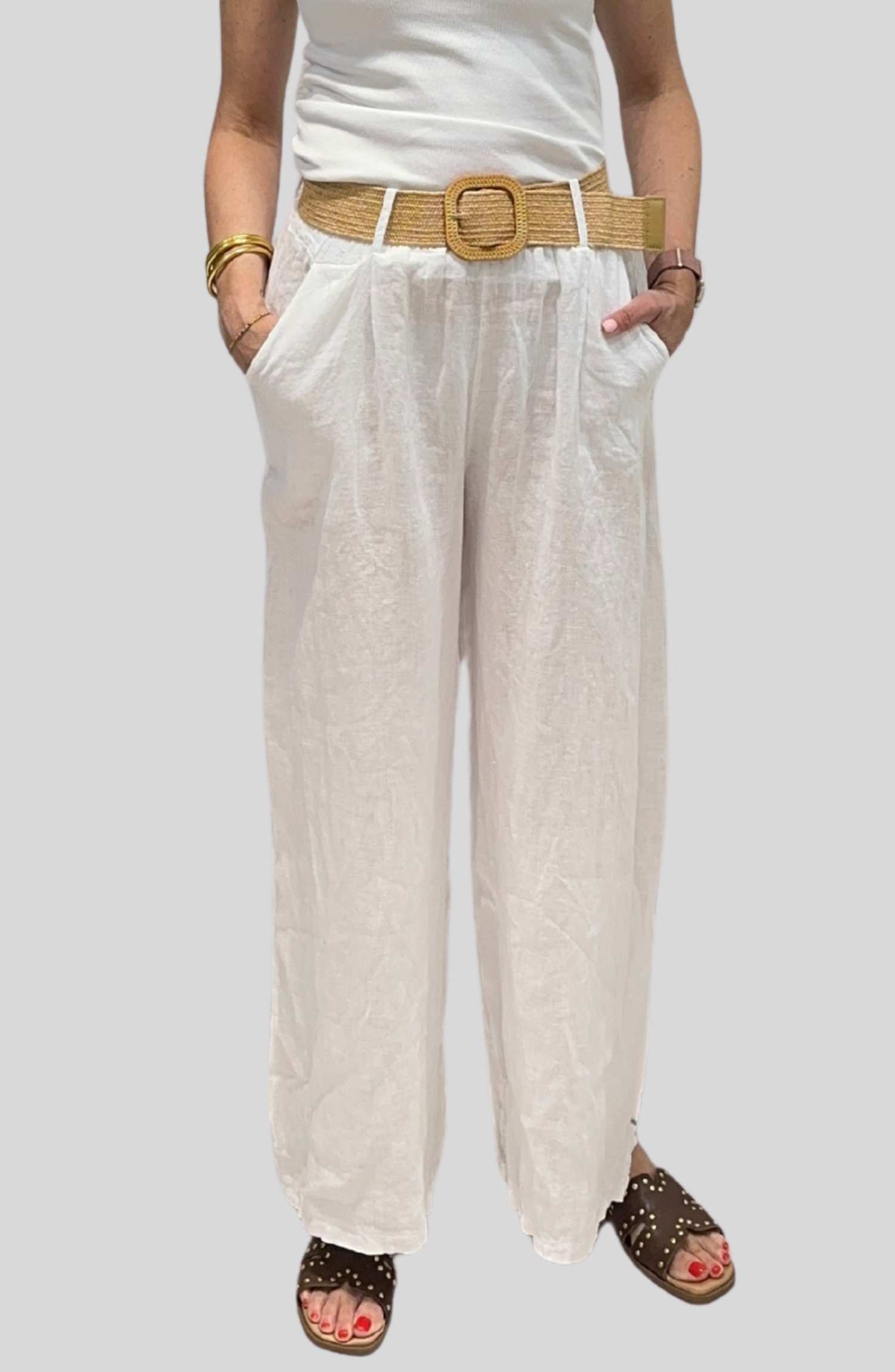 Pantalón de Lino con Cinturón de Rafia | Talla Única ( Adaptable desde la talla 36 hasta la talla 42)