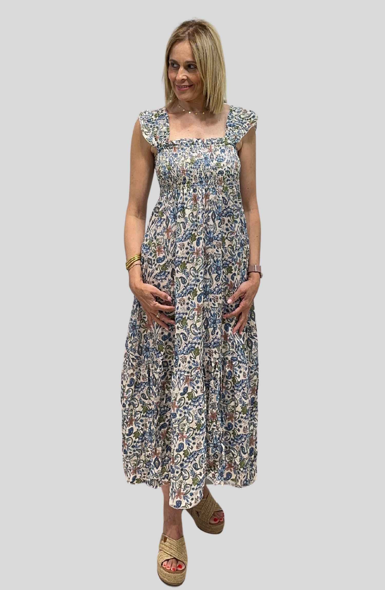 Vestido confeccionado en un suave tejido 100% viscosa con un estampado precioso que enamora a primera vista. De tirante ancho, se puede llevar cómodamente sobre los hombros o bajado para un look más desenfadado y femenino. El pecho con nido de abeja se ajusta al cuerpo de forma favorecedora, estilizando sin oprimir.